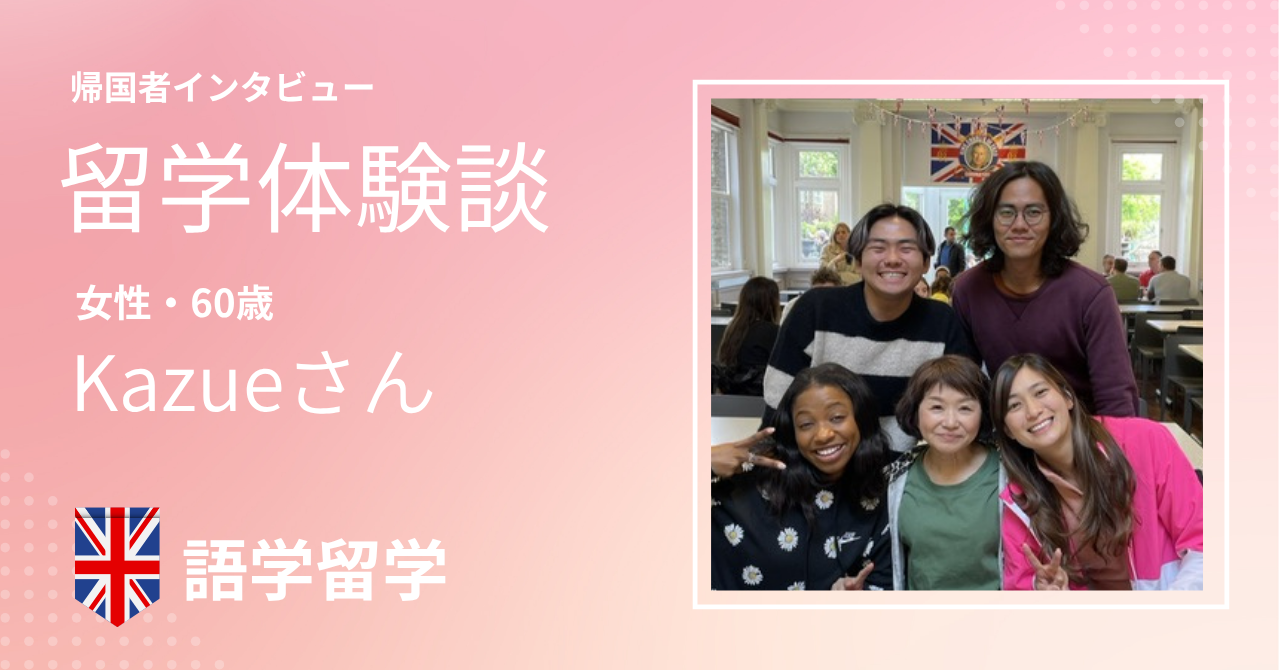 そんな中で、充実したイギリス生活を満喫されてきたKazueさんの体験談は、これから初めて海外に挑戦したい! でも心配・・・というみなさんにとって、きっと何かのヒント、キッカケになるかと思います。