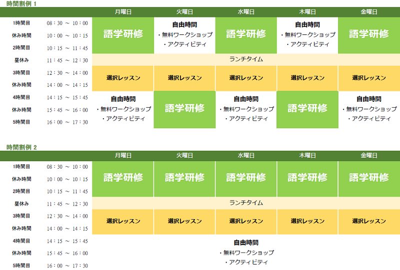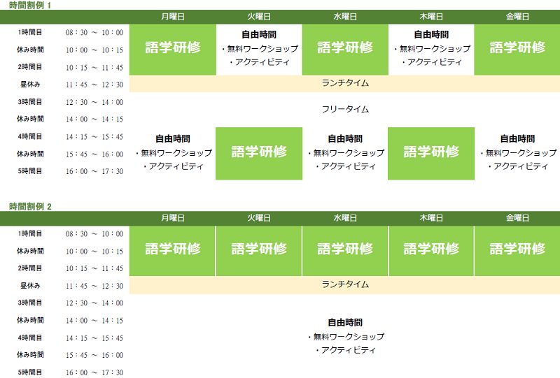 さらに、無料英語授業を受講すれば、朝から夕方まで英語漬けの留学生活が送れます。